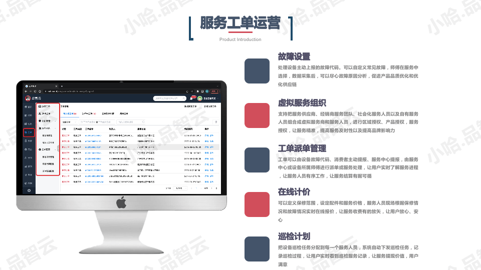 安装、售后服务、巡检工单,进度详情实时同步、服务超时预警提醒等满 足售后服务精细化管理的要求。